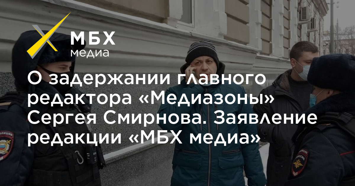 Редакция «МБХ медиа» считает недопустимым задержание главного редактора «Медиазоны» Сергея Смирнова — как по сути, так и по форме.