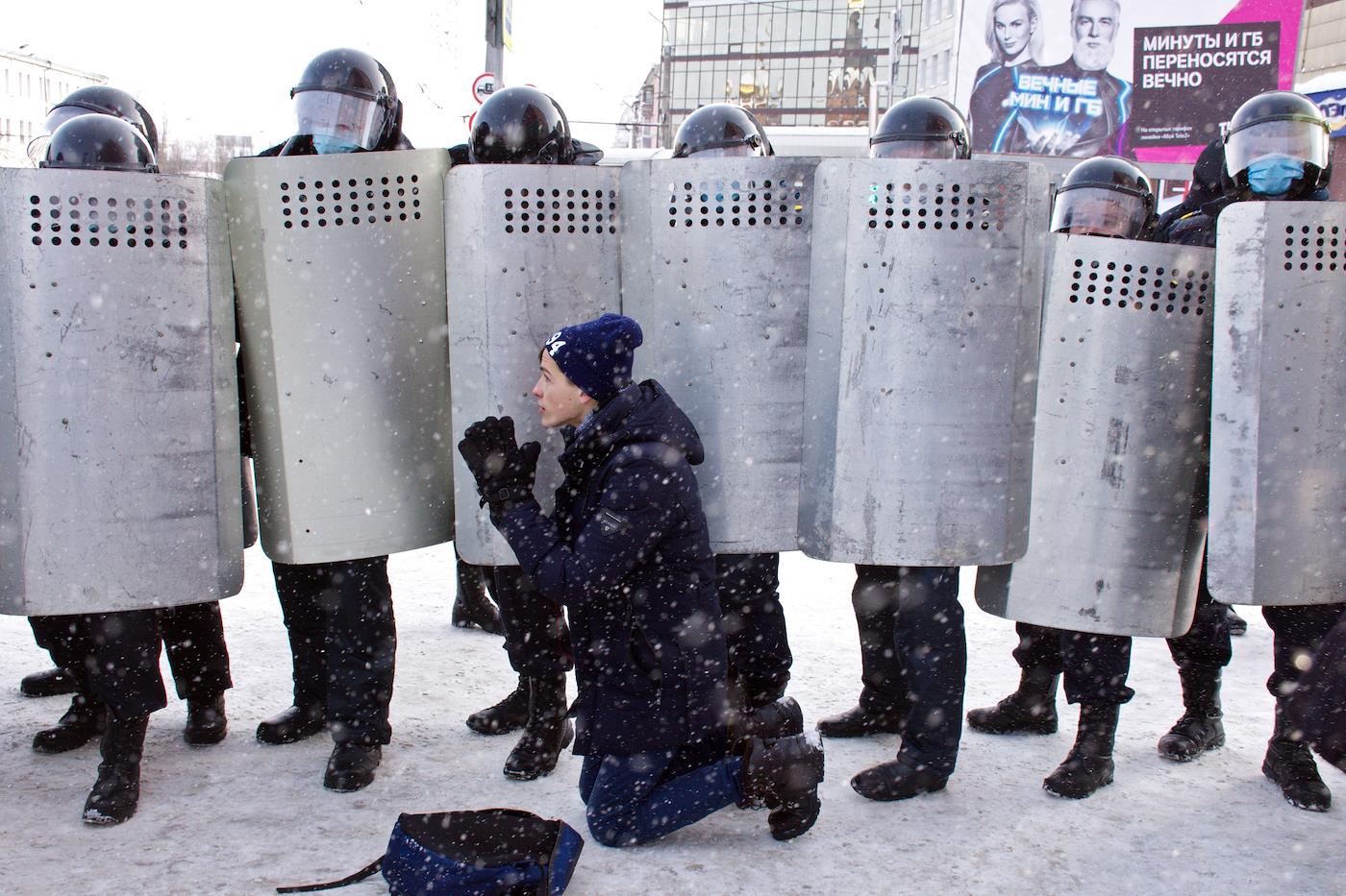 Акция в поддержку Алексея Навального в Барнауле, 23 января 2021 года. Фото: Андрей Луковский / Коммерсант