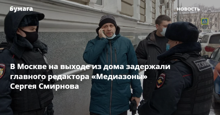 В Москве на выходе из дома задержали главного редактора «Медиазоны» Сергея Смирнова. Об этом сообщает само издание.
