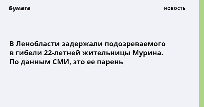 В Ленобласти задержали подозреваемого в гибели 22-летней жительницы Мурина