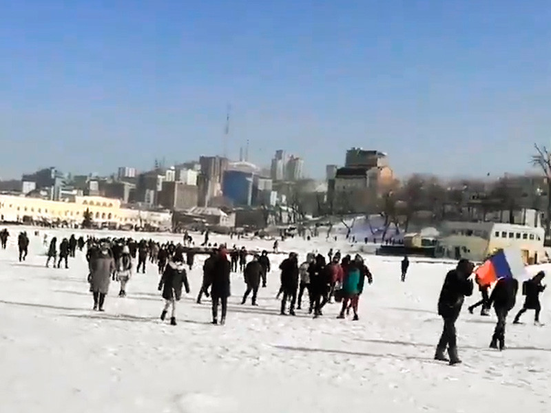 На Дальнем Востоке и в Сибири прошли акции в поддержку Навального. Во Владивостоке силовики вышли за протестующими на лед (ВИДЕО)