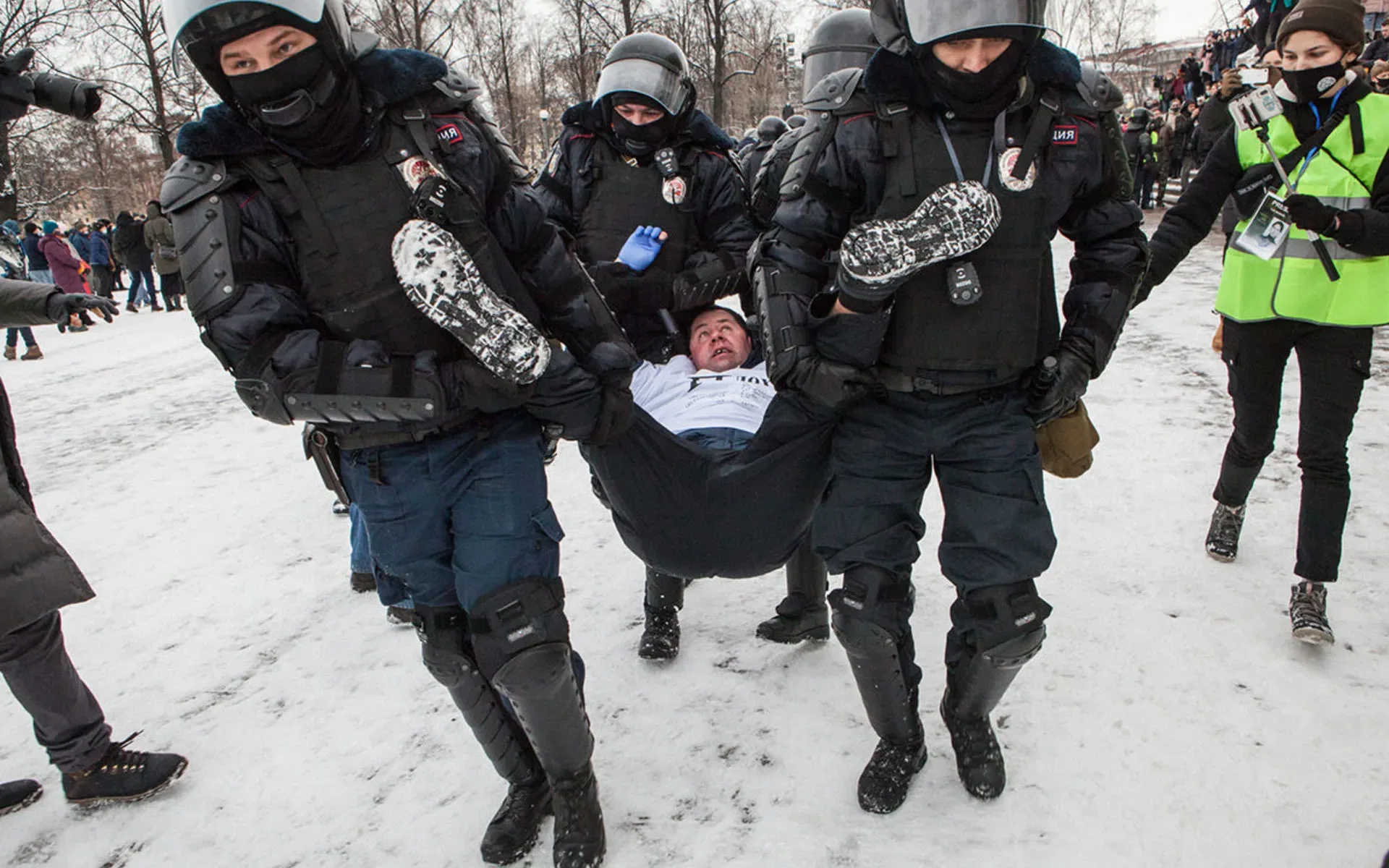 в автозаки попали и журналисты, даже те, которые были одеты в опознавательные жилеты с надписью «Пресса». На акции 31 января задержали корреспондентов «Коммерсанта», «MR7», «Московского комсомольца» и «Новой газеты».
