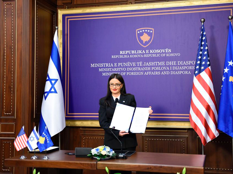 Главы МИД Косова и Израиля Габи Ашкенази и Мелиза Харадинай-Стубла 1 февраля подписали совместное заявление в ходе онлайн-церемонии, состоявшейся одновременно в Иерусалиме и Приштине. Такой формат важного для обеих стран дипломатического события был выбран из-за продолжающейся пандемии коронавируса.