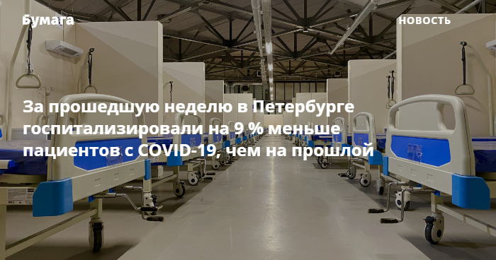 За прошедшую неделю в Петербурге госпитализировали на 9 % меньше пациентов с COVID-19, чем на прошлой
