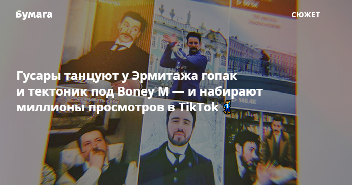 В конце января в твиттере и TikTok стало вирусным видео с мужчинами в дореволюционных мундирах, которые танцуют на Дворцовой площади под песню Rasputin группы Boney M. В первой соцсети ролик собрал 100 тысяч просмотров, во второй — 1 миллион.