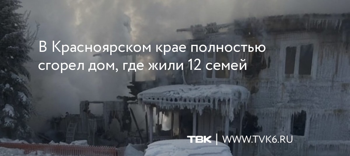 В Красноярском крае полностью сгорел дом, где жили 12 семей