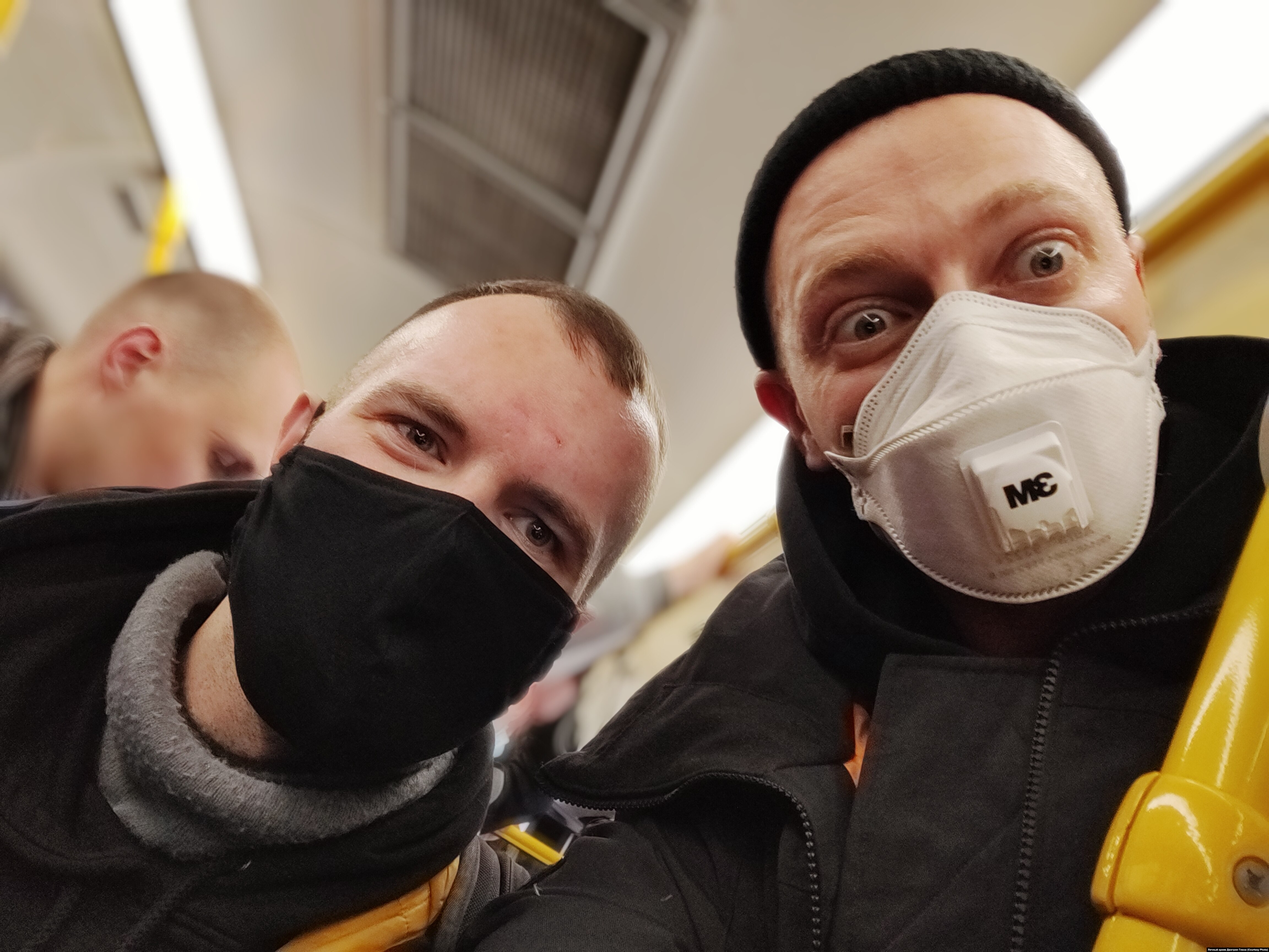 Несколько дней фотограф провел на больничном, поэтому 31 января вышел снимать акцию в Петербурге в каске с надписью "Пресса", а также в опознавательном жилете.
