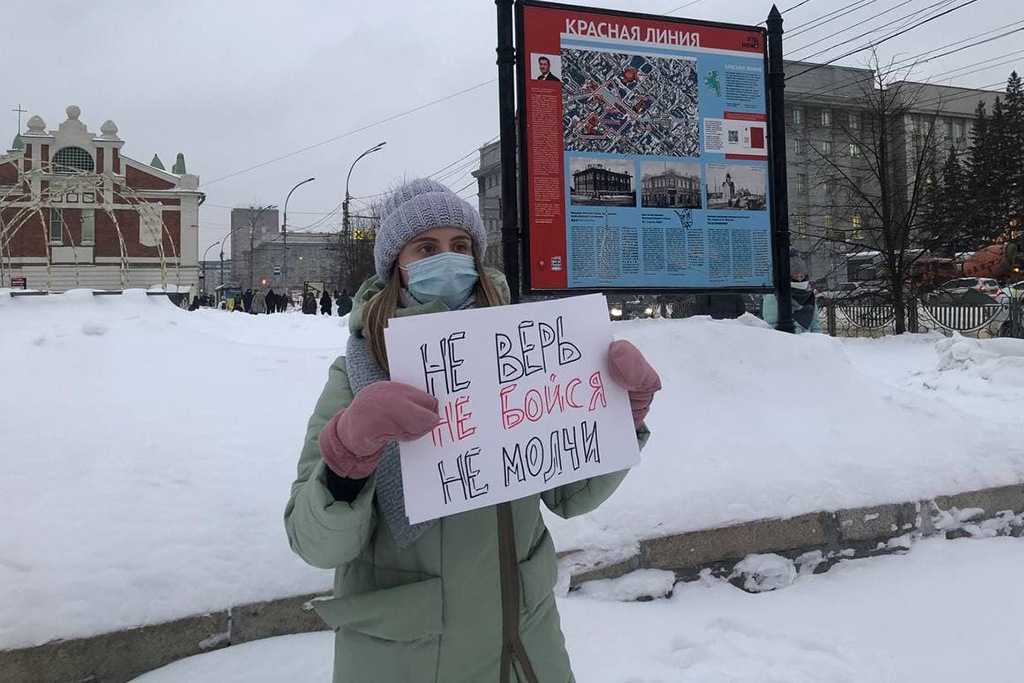 Ранее утром 3 февраля в Первомайском сквере с плакатом «Россия будет свободной» провела пикет журналистка и автор редакции Маргарита Логинова.