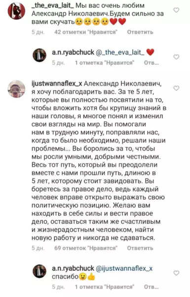 — Я закон об образовании соблюдаю и реальную политическую деятельность не веду. Я беспартийный. Они видят все, что происходит, и относятся с сочувствием, с гордостью, с пониманием. Они очень расстроились, когда я уволился. Они понимают, какой выбор мне пришлось сделать.