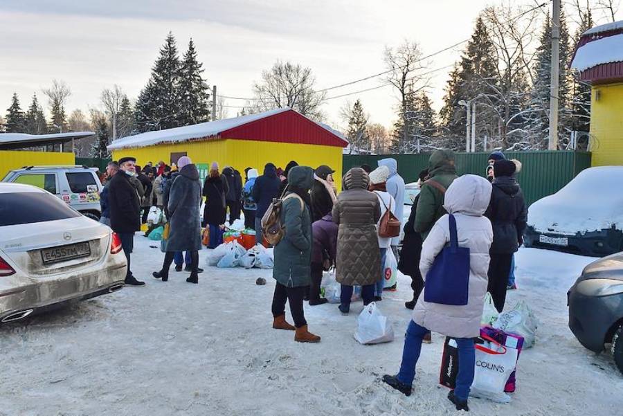 Сспецприемник для мигрантов в деревне Сахарово в Троицком административном округе, куда доставили задержанных участников несогласованной акции 31 января 2021 в поддержку политика Алексея Навального в центре Москвы. Родственники задержанных у здания спецприемника.Фото: Игорь Иванко/Коммерсантъ