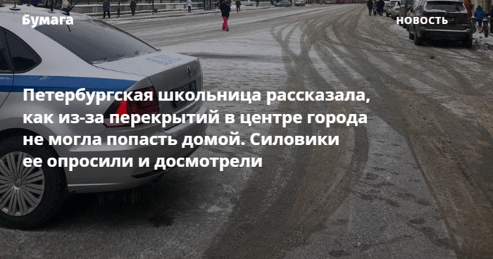 Петербургская школьница рассказала, что из-за перекрытий в центре города она не могла попасть домой, пишет «Фонтанка»