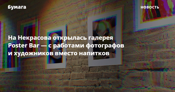 На улице Некрасова открыли первый в Петербурге галерейный проект нового формата Poster Bar. Там можно купить понравившуюся работу, сняв ее прямо со стены заведения, рассказали «Бумаге» организаторы.