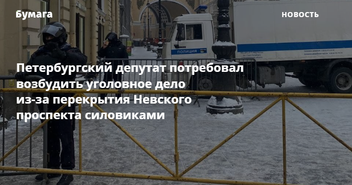 Петербургский депутат потребовал возбудить уголовное дело из-за перекрытия Невского проспекта силовиками