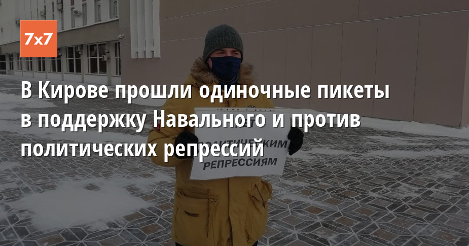 В субботу, 6 февраля, трое кировских активистов провели одиночные пикеты с требованиями освободить политика Алексея Навального и прекратить политические репрессии. Они простояли с плакатами возле администрации города около часа, сотрудники полиции переписали их данные и сфотографировали плакаты, но никого не задержали. Об этом «7х7» рассказали участники одиночных пикетов Сергей Дядькин и Светлана Марина.