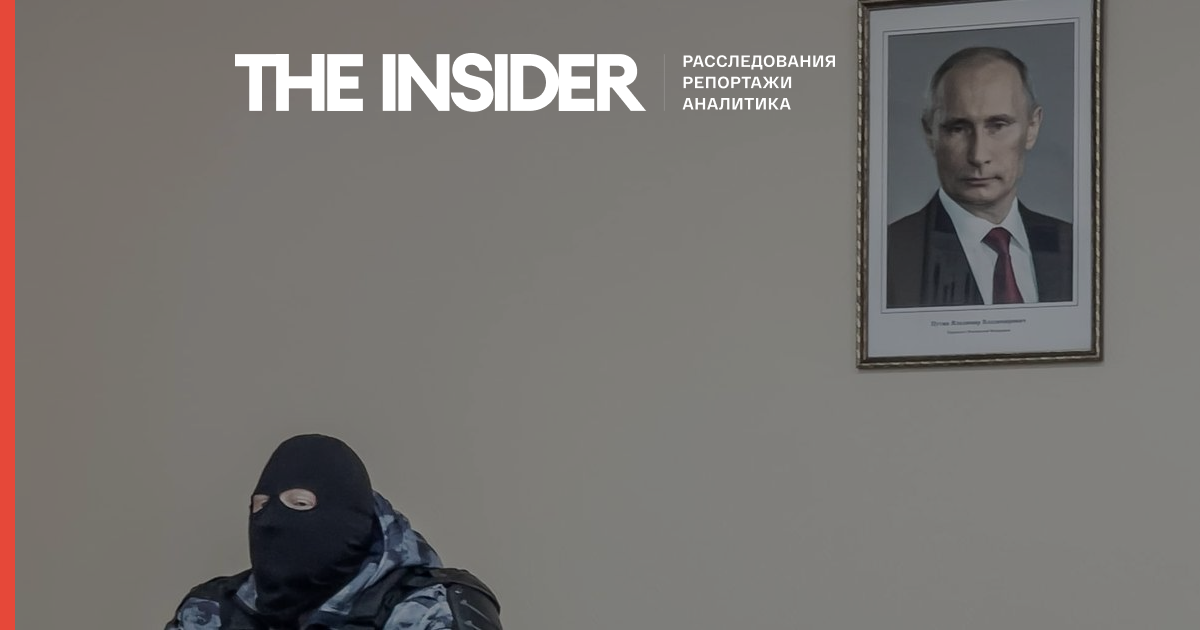 На фотографии изображен силовик в балаклаве и камуфлированной форме, который сидит под портретом российского президента Владимира Путина.