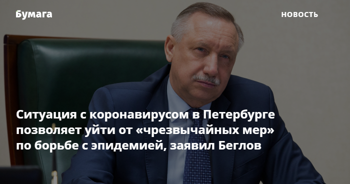 По словам Беглова, город готов перейти к «постоянным и планомерным действиям» по борьбе с коронавирусом. В частности, планируется возвращать к штатному режиму работы стационары, перепрофилированные под прием пациентов с COVID-19.