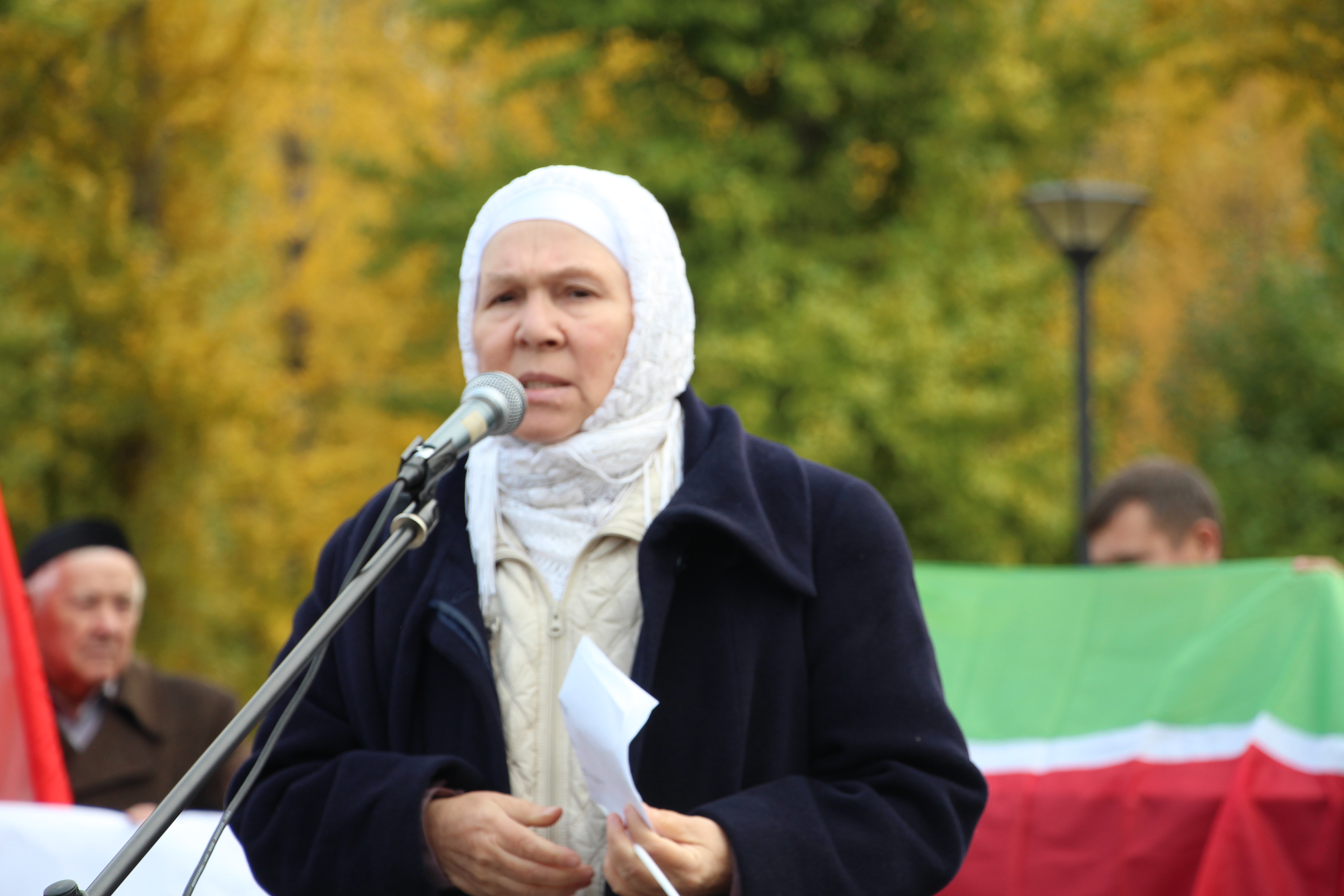 На Дне памяти писательница заявила, что сегодня необходимо "открыть народу великий самообман", татары "на глазах у всего мира" теряют "свою нацию, идентичность" и "себя", а правит татарами "колониальная администрация".