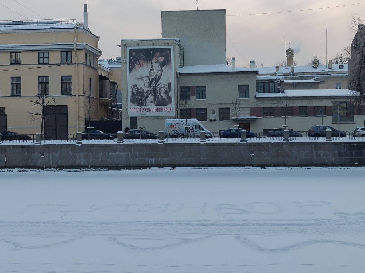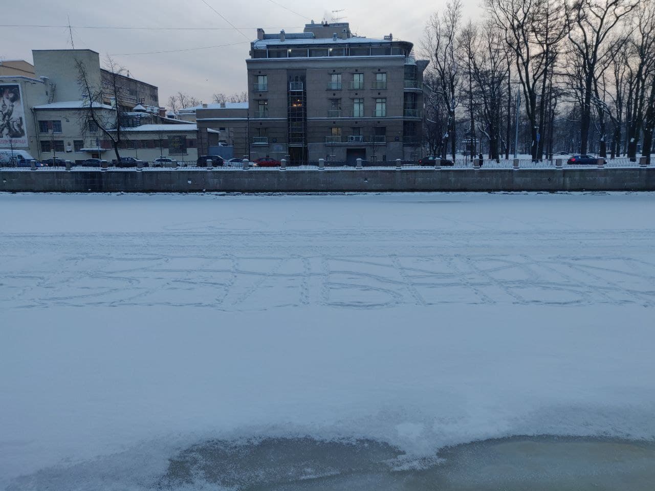 В Петербурге сотрудники МЧС приехали заливать водой большую надпись «Навальный», оставленную на заснеженной поверхности реки Фонтанки, рассказала «Бумаге» читательница Полина Каргина.
