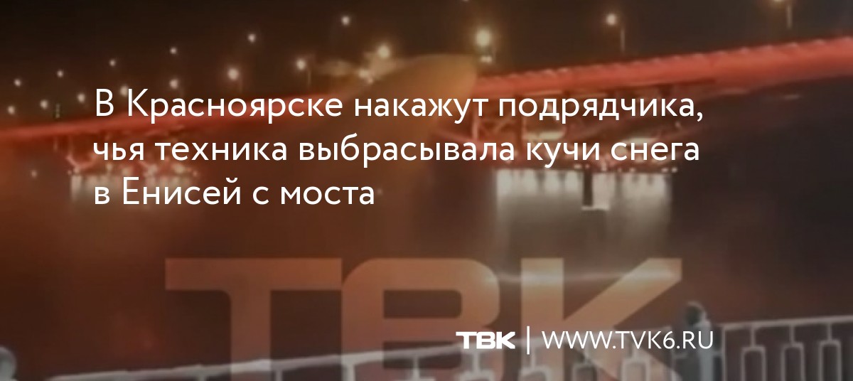 В ведомстве рассказали, что сброс с моста снега в Енисей повлек за собой загрязнение реки. Дело возбуждено по ст. 8.13 КоАП РФ «нарушение требований к охране водных объектов». Подрядчику грозит штраф от 80 тыс. до 100 тыс. руб.