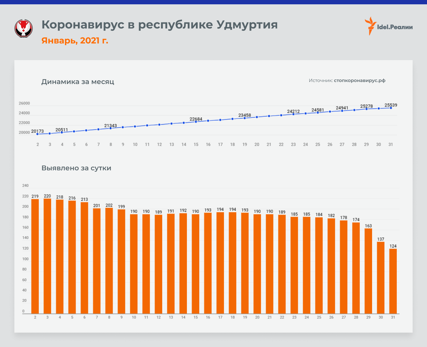 В начале января число случаев за сутки составляло более 200. К концу января это число снизилось до 124.