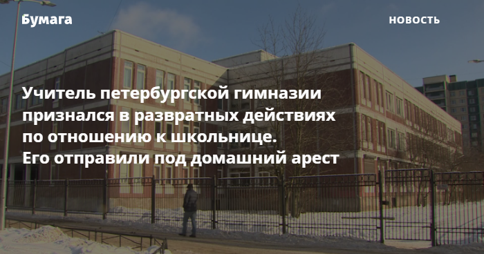 Приморский районный суд отправил под домашний арест учителя ОБЖ из петербургской гимназии Юрия Филиппова, обвиняемого в развратных действиях по отношению к 14-летней школьнице. Об этом сообщает объединенная пресс-служба судов Петербурга.