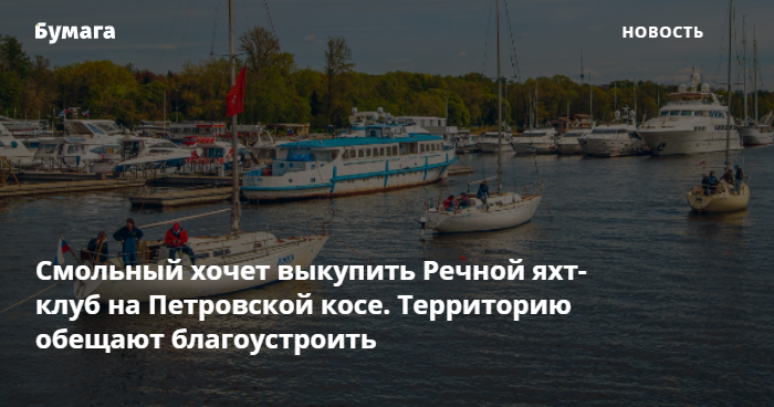 Комитет по физической культуре и спорту предлагает выкупить Речной яхт-клуб на Петровской косе. Об этом сообщается в письме, опубликованном в группе клуба во «ВКонтакте».