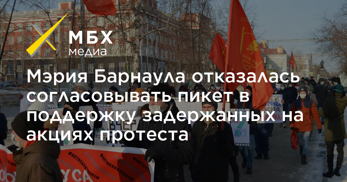 Мэрия Барнаула отказалась согласовывать пикет в поддержку задержанных на акциях протеста