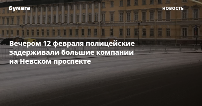 Вечером 12 февраля полицейские задерживали большие компании на Невском проспекте