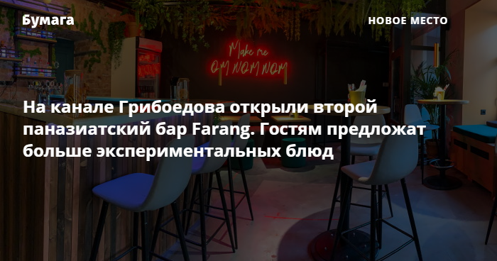 На канале Грибоедова открыли второй паназиатский бар Farang