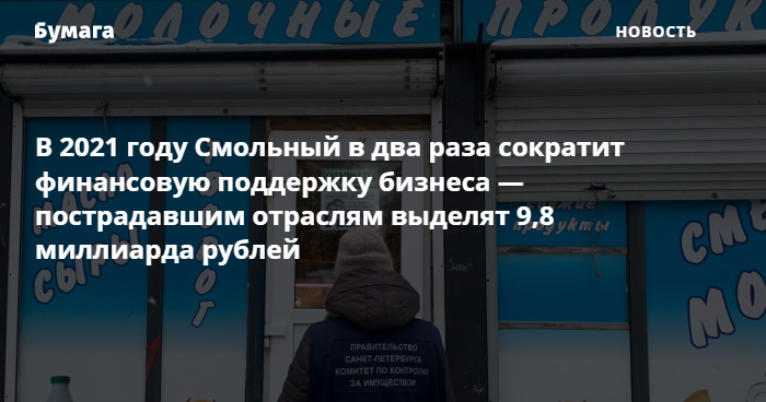 В 2021 году Смольный в два раза сократит финансовую поддержку бизнеса