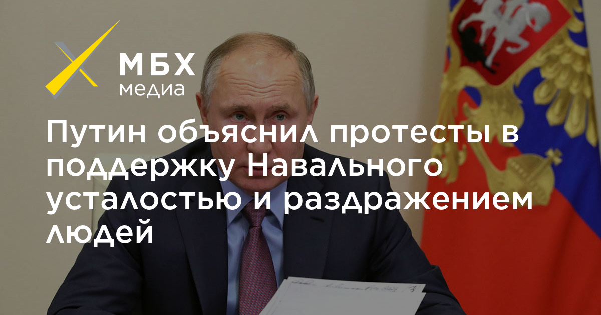 Владимир Путин заявил, что протестные акции в поддержку Алексея Навального возникли на фоне накопившегося раздражения россиян из-за пандемии и плохих условий жизни. Отрывки встречи президента с руководителями СМИ были показаны в эфире телеканала «Россия-24» (ВГТРК).