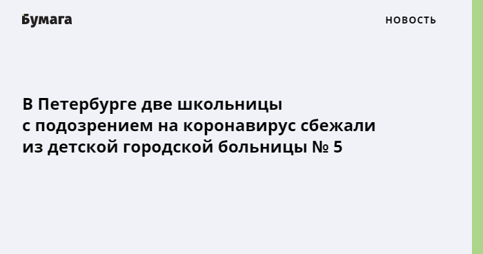 В Петербурге две школьницы с подозрением на коронавирус сбежали из детской городской больницы № 5