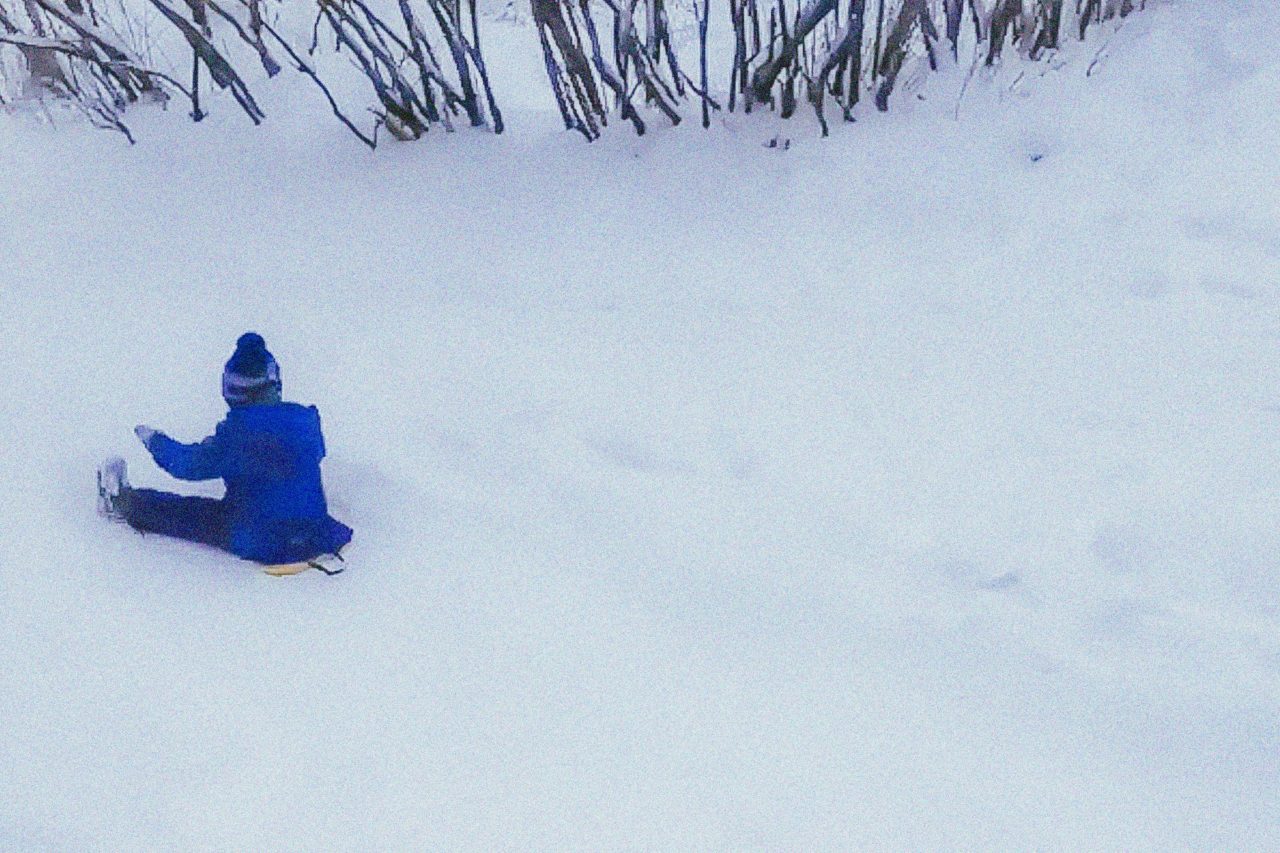 Саша катается с горки на детской площадке