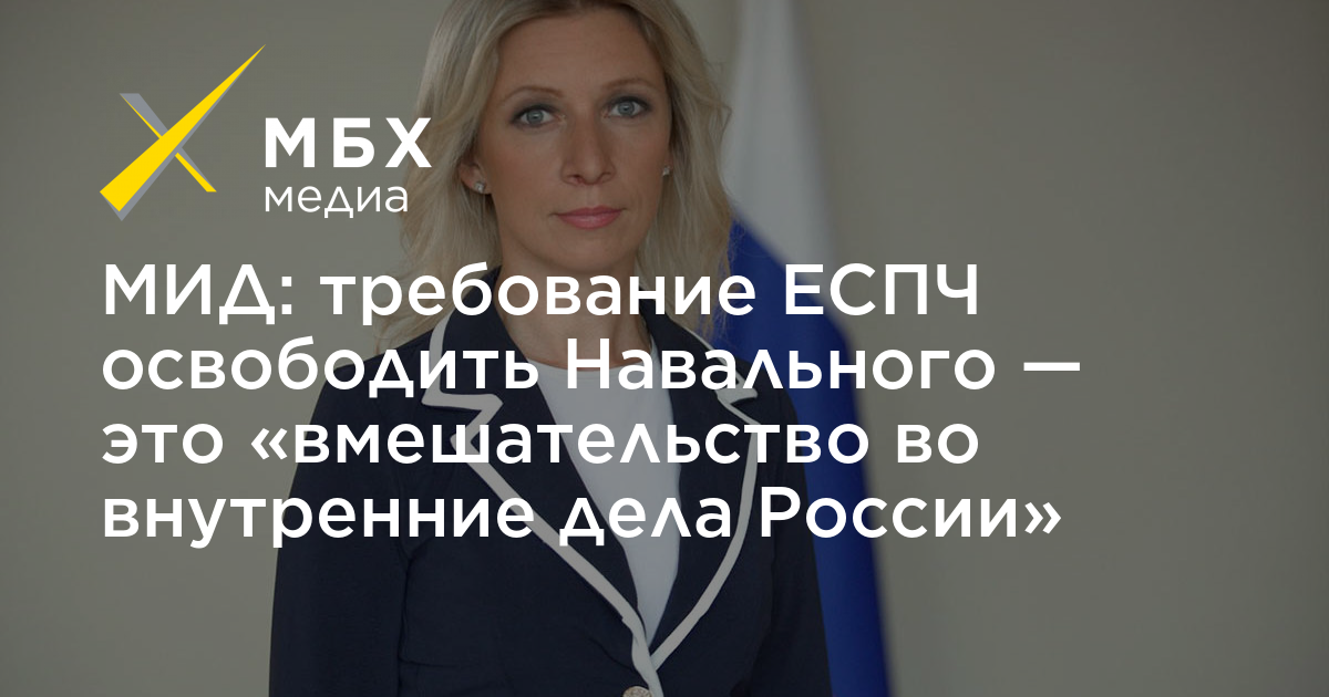 Официальный представитель МИД России Мария Захарова заявила, что требование Европейского суда по правам человека (ЕСПЧ) освободить Алексея Навального — это «еще один элемент вмешательства Запада во внутренние дела России». Об этом она сказала в эфире телеканала «Россия 24».