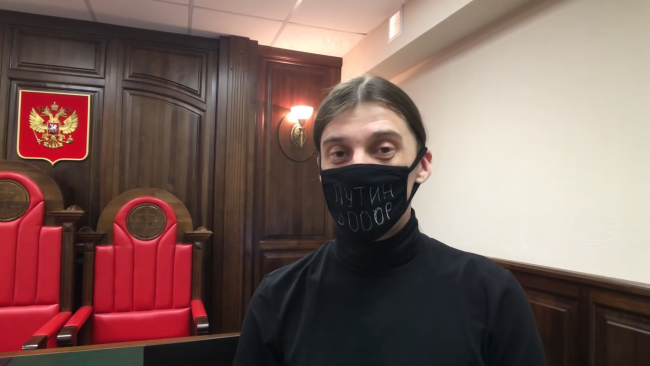 Как уточнил в своем YouTube-канале Алферов, во время заседания он находился в маске с надписью «Путин вооор». Судья Александр Щербинин потребовал от него поменять эту маску.
