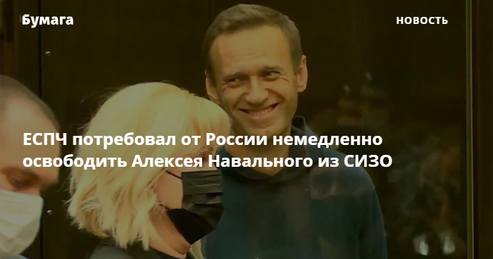 Европейский суд по правам человека потребовал от властей России незамедлительно освободить Алексея Навального. На сайте оппозиционера опубликовали решение Палаты из семи судей.