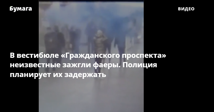Вчера вечером неизвестные зажгли фаеры в вестибюле станции метро «Гражданский проспект».