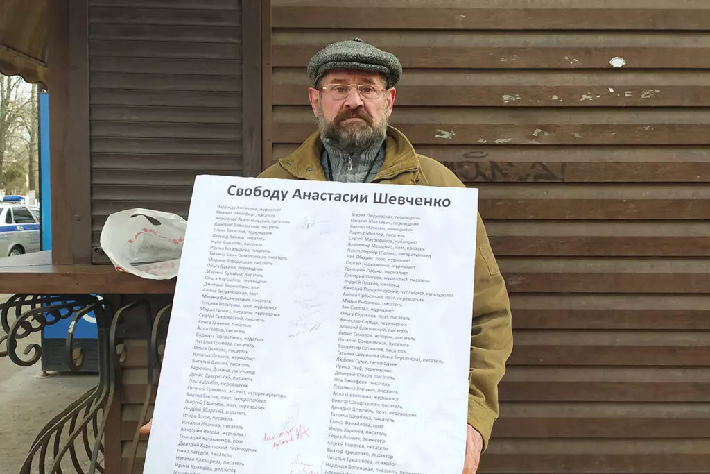 «Когда человек оказывается один на один с репрессивной машиной, ему важно чувствовать поддержку других людей. Поэтому я здесь. А то, что происходит с Анастасией Шевченко — пример вопиющей несправедливости», — сказал Александр «Юг. МБХ медиа».