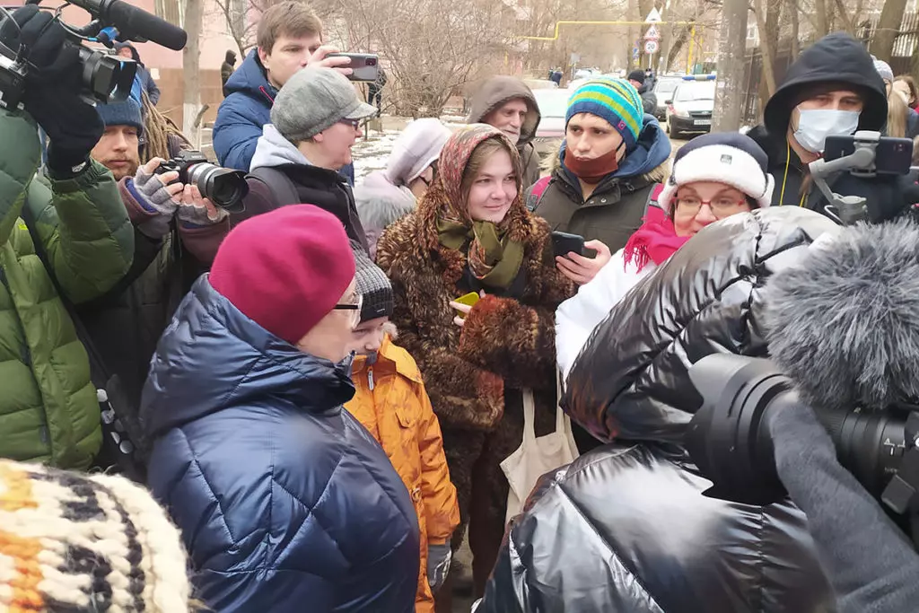 Ближе к половине одиннадцатого прибыли дети и мама Анастасии, а сразу за ними и она сама. «Настя, мы с тобой!», «Настя, держись! Все будет хорошо», — закричали ей из толпы. Среди приехавших из других городов были и представители «Открытой России» Анастасия Буракова и Александр Соловьев, и осужденная по аналогичному делу в Краснодаре Яна Антонова, и представитель правозащитной организации Amnesty International Александр Артемьев, и даже шеф-редактор RT Мария Баронова.