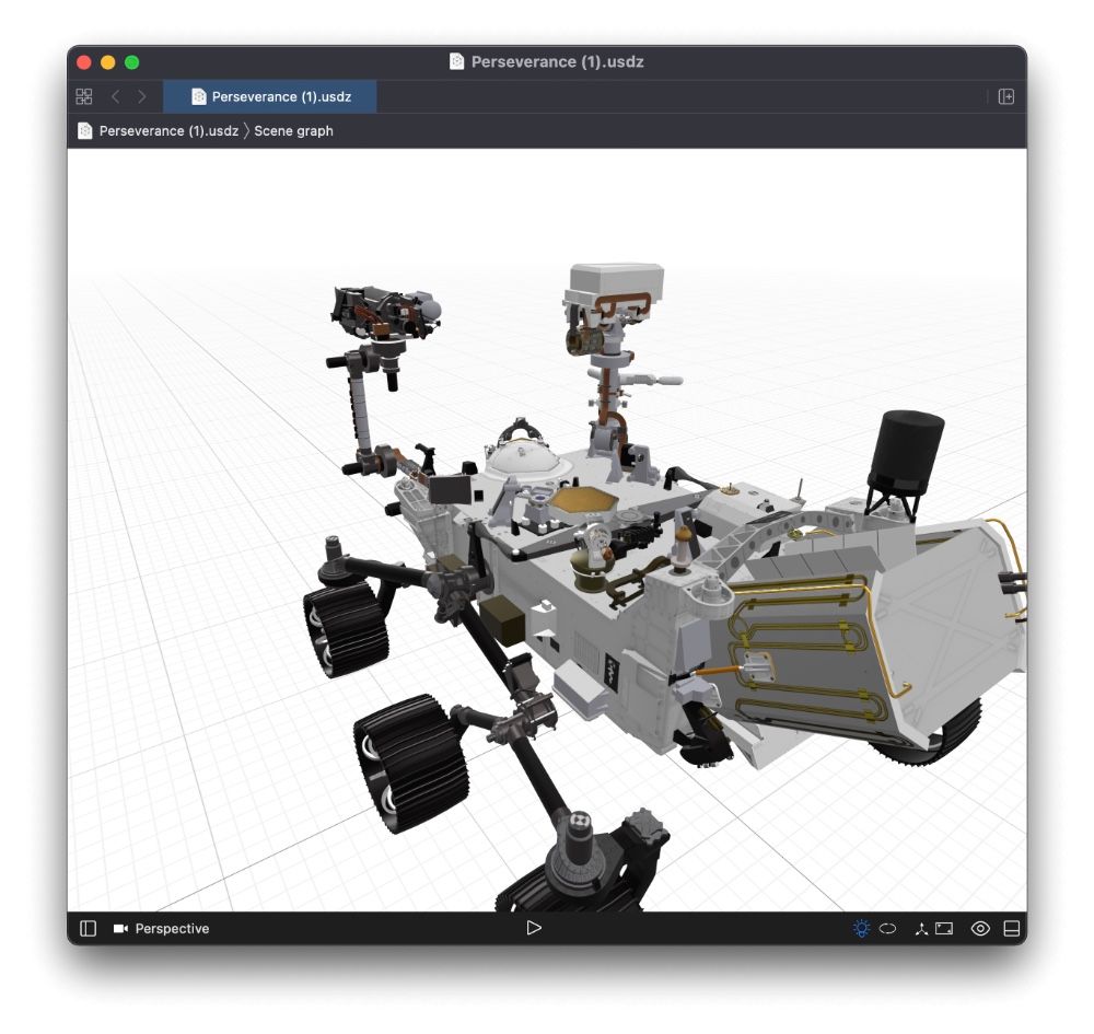 Среди материалов NASA, посвященных миссии, можно найти детальную 3D-модель «Персеверанса». Ее можно покрутить в браузере (вот ссылка), или даже скачать на компьютер, чтобы затем открыть и отредактировать в любимом 3D-редакторе.