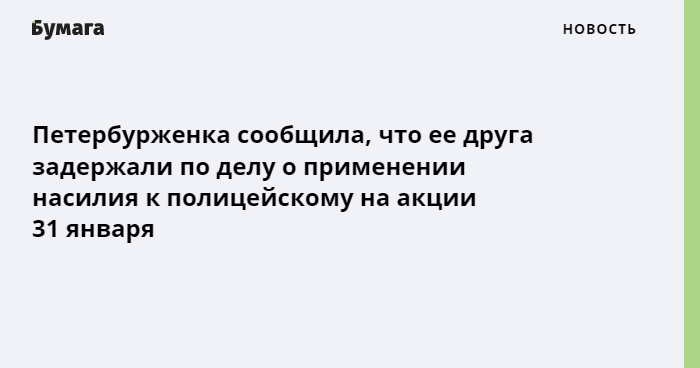 Петербурженка сообщила, что ее друга задержали по делу о применении насилия к полицейскому на акции 31 января