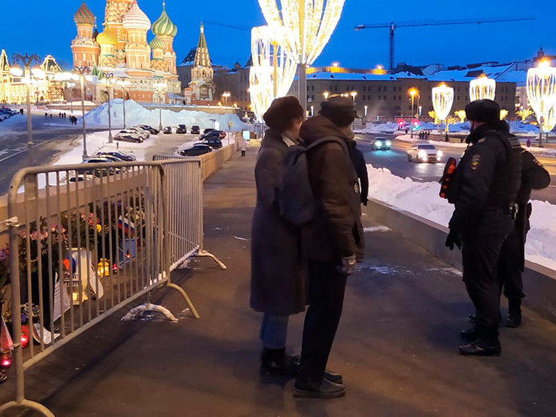 В Москве вечером в пятницу, 19 февраля, сотрудники полиции задержали несколько волонтеров - "смотрителей", которые охраняют мемориал на месте убийства политика Бориса Немцова. Впервые за все время существования мемориала его сегодня огородили металлическим забором, пишет Znak.com.