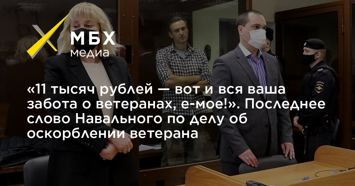 «11 тысяч рублей — вот и вся ваша забота о ветеранах, е-мое!». Последнее слово Навального по делу об оскорблении ветерана