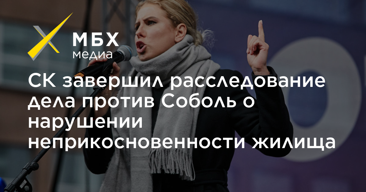 «Главным следственным управлением СК по Москве завершено расследование уголовного дела в отношении Любови Соболь. Она обвиняется в совершении преступления, предусмотренного ч. 2 ст. 139 УК РФ («Нарушение неприкосновенности жилища, совершенное с применением насилия»)», — заявили в СК.