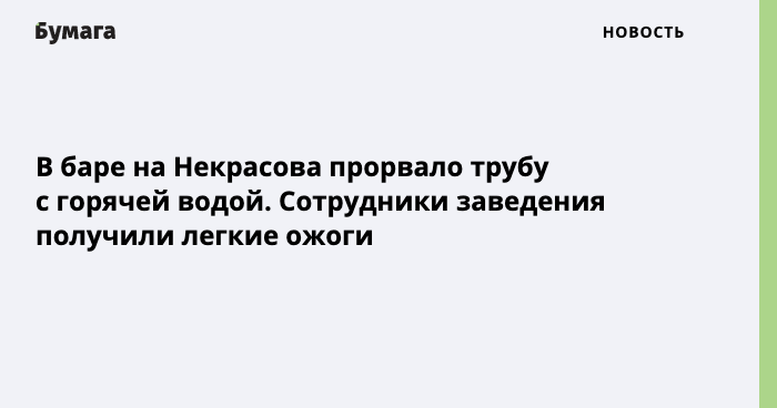 Вечером 20 февраля в баре на улице Некрасова, 36 прорвало трубу с горячей водой. Об этом «Бумаге» сообщили в ЖКС № 1 по Центральному району.