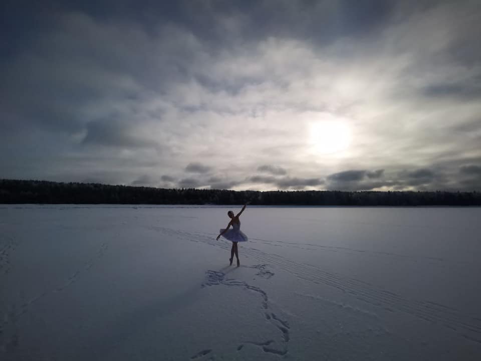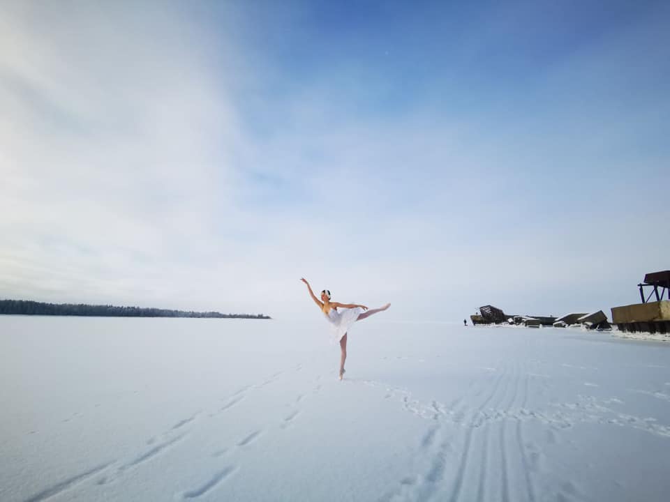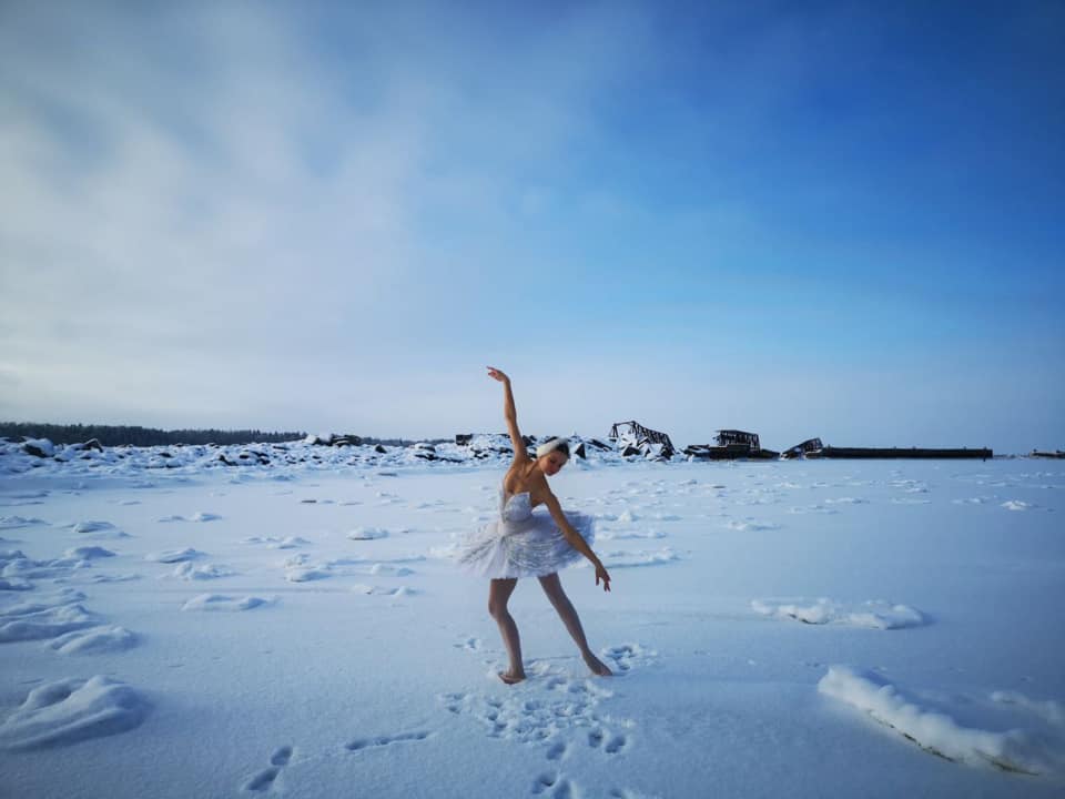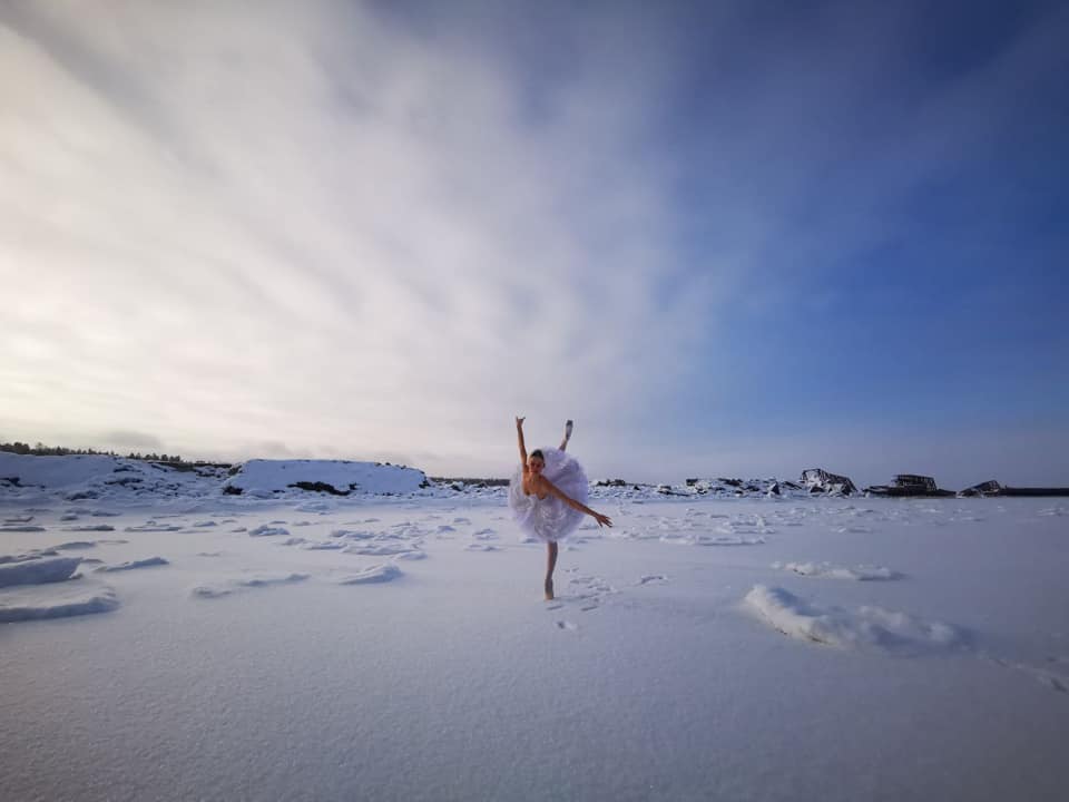 Артистка Мариинского станцевала на льду бухты Батарейной