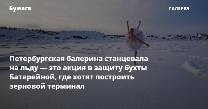 Балерина Ильмира Багаутдинова, которая выступает в кордебалете Мариинского театра, на морозе исполнила танец в защиту бухты Батарейной. На территории хотят построить зерновой терминал, жители Ленобласти — против. «Бумага» показывает акцию артистки.