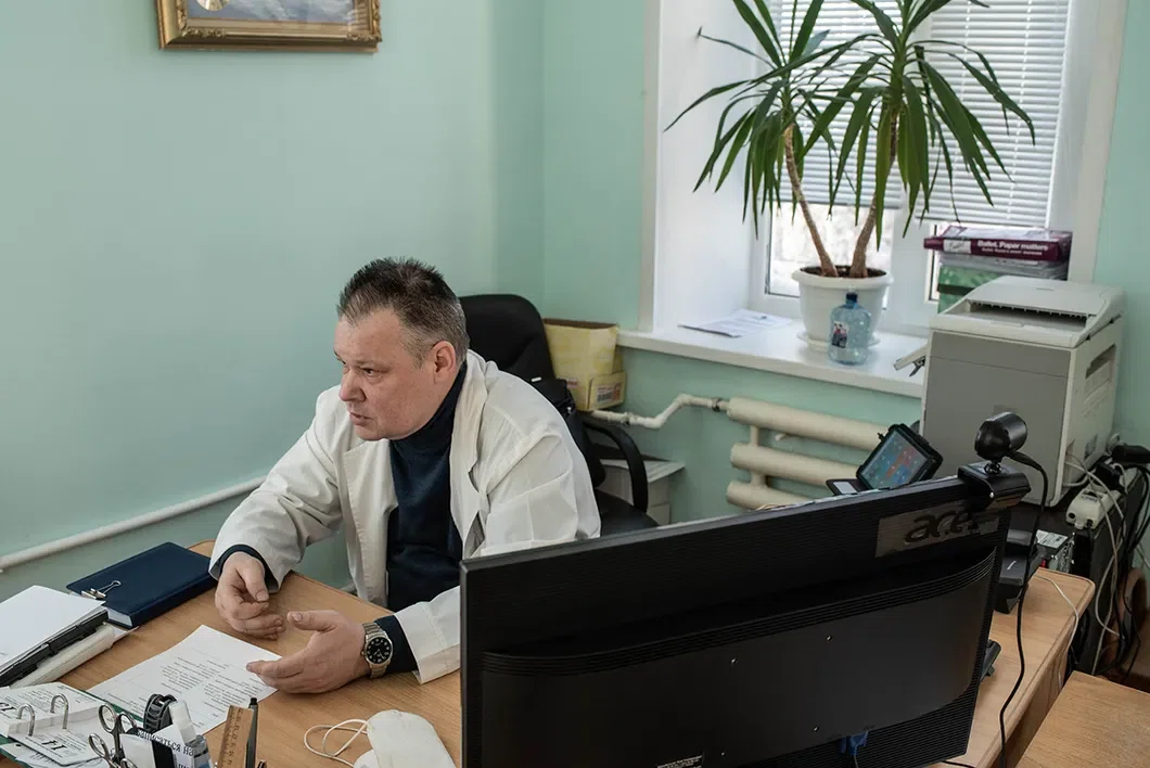 В ЦРБ Артемовска, в 20 километрах отсюда, нас встречает заведующий, врач-хирург Андрей Александрович Болог. По его словам, если бы не инициатива врачей посылать в село хотя бы мобильный ФАП — там бы сейчас не было ничего, даже его.