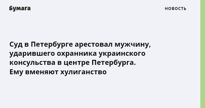 Суд в Петербурге арестовал мужчину, ударившего охранника украинского консульства в центре Петербурга