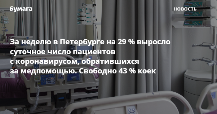 За неделю в Петербурге на 29 % выросло суточное число пациентов с коронавирусом, обратившихся за медпомощью